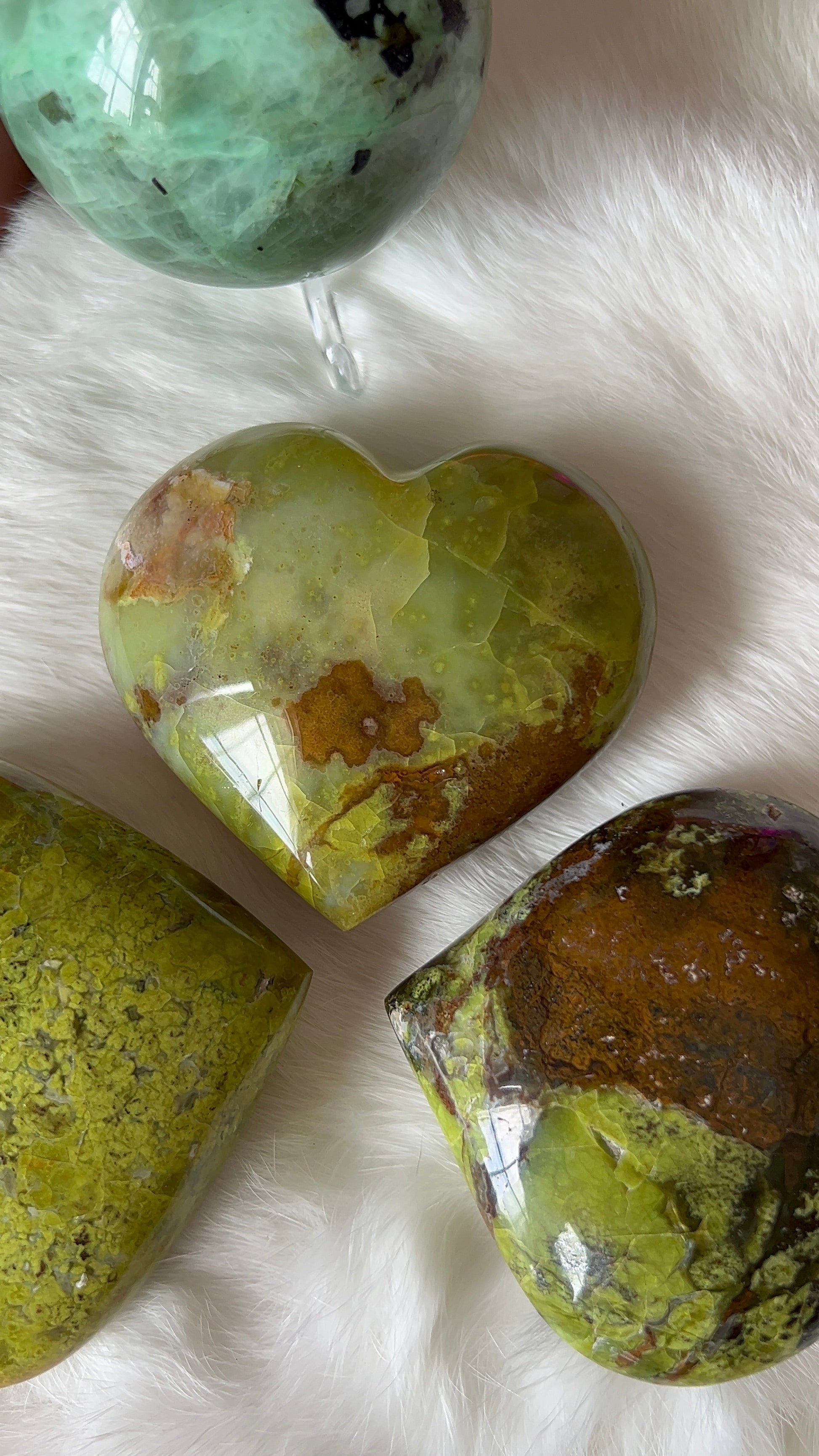 Large Green Opal hearts. These lovely hearts measure approx 9cm and have lovely colouration and a nice puffy shape. Each heart is sold separately and will be intuitively chosen for you.
